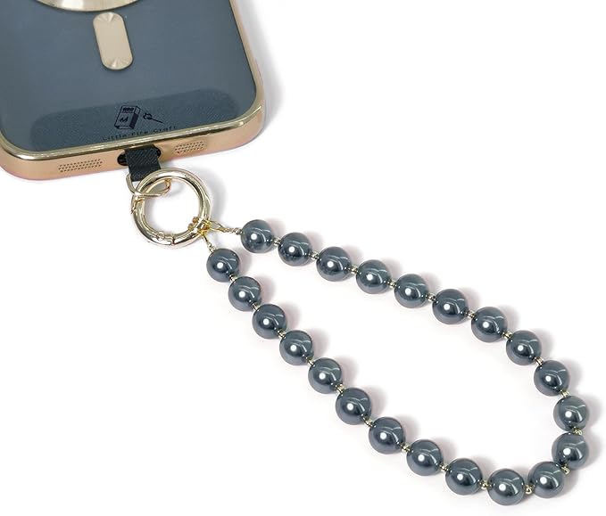 Beaded Phone Wrist Strap Phone Lanyard Hand Strap Detachable Phone Wrist Lanyard (Charcoal Grey)