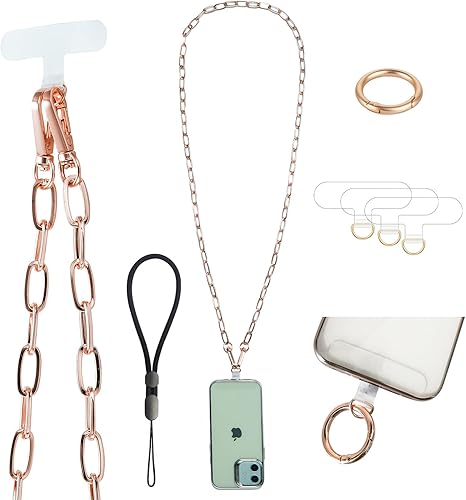 Metal Phone Chain Holder, Universal Cell Phone Crossbody Neck Lanyard with Tether Pads Adjustable Phone Wrist Strap