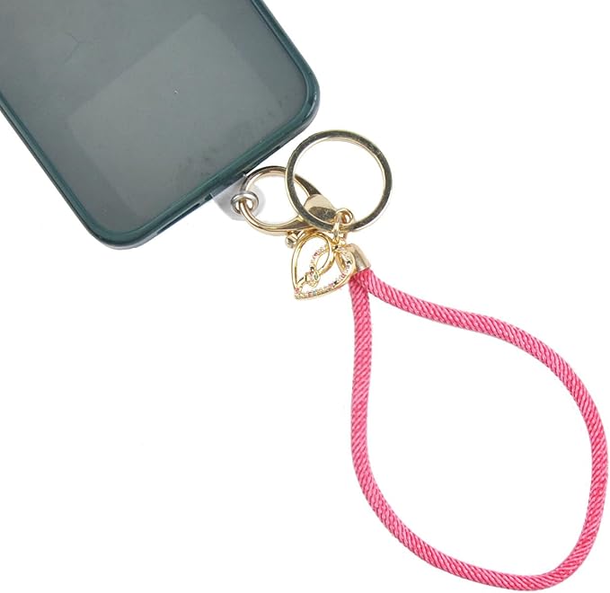 Female Pink Cell Phone Lanyard Hand Wirst Strap Made of Handmade Woven Nylon Durable Wristlet Smartphone Holder