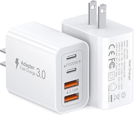 40W USB C Charger Cube, 2-Pack Wall Plug Fast Charging Block, 4-Port PD+QC Power Adapter Multiport Brick Type C Box for iPhone